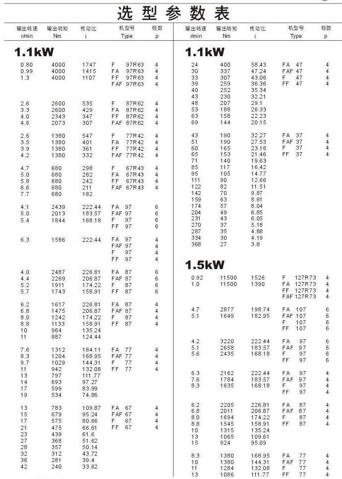 選型參數表1.1kW(續(xù)),1.5kW